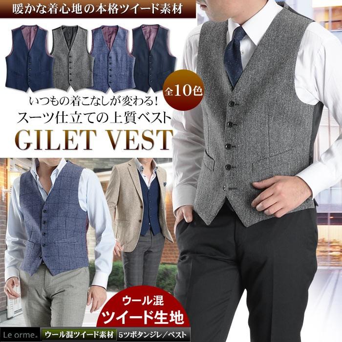 メンズベスト ビジネス ウール ツイード ジレ Bizカジ ノーカラー 5ツボタン カジュアル おしゃれ 着こなしスーツ仕立て スーツスタイルmarutomi 通販 Paypayモール
